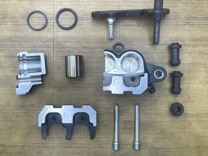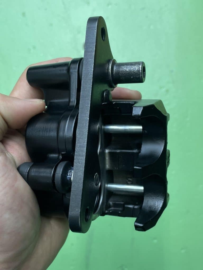 ん?真剣な顔つきで、新品のキャリパーが…。