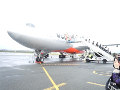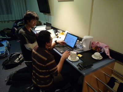 | Formula SAE とは? | 2010年12月05日 約8時間のフライト後の6:20(日本時間+1時間)、ゴールドコースト空港に到着。 朝食は機内食を頂きました。到着後荷物検査へ。今回も部品を持ち込んだため、昨年同様マッチョな警備員が現れ・・ということを想像しましたが、今回は何の検査なく素通りすることが出来ました。 その後、国内線へ乗り換えメルボルンへ向け出発します。しかし、ここでもトラブル発生仲の良い中山と加藤の席が同じ席であることが判明。どちらが膝下になるのか話し合っていましたが、無事に一人1つの席を手に入れることが出来ました。8:10メルボルンへ向け、ゴールドコーストを出発。広大な面積であるオーストラリアでは国内にも時差があります。 2時間のフライト後の11:30メルボルン空港へ到着。到着後は携帯電話を使用できるようにするため、SIMカードを購入し、バンをピックアップ。早速予約している空港近くのホテルへ移動します。 ホテル到着後は静的イベントの準備のチームと、ホームセンターにて物資の購入を行うチームに分かれ行動しました。 物資調達班とホテルで合流後夕飯を取り、明日のためのミーティングを行いました。今日は長旅の疲れで、眠いメンバーもいますが、イベント準備のため寝かすことは出来ません。 明日は車両を受け取った後、RMIT大学にて車両整備をする予定です。 3:00機内で客室乗務員が朝食を配り始めます。起きた瞬間のブ レックファーストは強烈です。しかし、消化の良い物ばかりでおいし く頂くことが出来ました。 6:20オーストラリアゴールドコーストに上陸! 初めて異国の地に降り立った高知県出身の中山の感想は・・・ 四国に形似てますよね。 7:30メルボルンへ向かうため、国内線へ乗り込みます。しかしここ でトラブル発生。一年生の中山と加藤の席が同席であることが判 明しました。何とか話をし、無事に解決!8:10無事にメルボルン空 港へ出発します。 機内では離陸前シートベルトを着用しなければなりません。 もちろんウォンバットにも着用させます。 オーストラリア上空を航行中 2時間のフライト後、ついに11:30メルボルン空港へ到着。 ここで軽食を取り、レンタカーをピックアップしホテルへ向かいます。 オーストラリア最初の飯は・・・サブウェイです。ファーストフードは 遠征で大活躍しますが、いきなり出会うことになるとは思いません でした。 レンタカーピックアップ後、ホテルへ出発!空港から来るまで5分 程度の場所にあるホテルに一日だけ宿泊します。 宿泊するホテルを取ったらポーズを決めてくれました。 静的イベントの準備は夜中まで続きます。 |