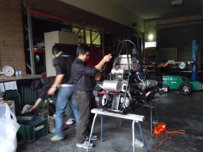 | Formula SAE とは? | 2010年12月06日 本日はホンダオーストラリア様にて木箱を開梱し、午後からロイヤルメルボルン工科大学(RMIT大学)にて車両整備をいたします。車両整備は大会前日までRMIT大学で行えるため、空港近くの宿をチェックアウトし、RMIT大学の近くにある宿へチェックインします。 荷物をまとめ8:00朝食を取ります。朝食後、マシンを運ぶための3tトラックをレンタカー屋まで取りに行きました。受け取り後、トラックとバンの2台で日本通運様へ向かい挨拶を済ませ、ホンダオーストラリア様へ向かいます。到着後ここでも挨拶を済ませ、木箱を受け取ります。 受け取り後、昼食をホンダオーストラリア様で頂きました。ボリュームとうまさを兼ね備えた昼食にメンバー一同大満足です。 昼食後、昨日そろわなかった物資を調達した後RMIT大学へ向かいました。到着後はすぐに整備を開始し日本でやり残した作業を進めました。途中トラブルが多々ありましたが解決していきます。作業は夜中の2時過ぎまで続きました。 車両整備がすべて終わらなかったため、明日もRMIT大学にて車両整備を行う予定です。 8:00本日は開梱や車両整備があるため、しっかり朝食を取ります。 朝食にはオーストラリアでポピュラーな食べ物であるベジマイトが 欠かせません。 9:00マシンをのせるための3tトラックを受け取るためにレンタカー屋 へ向かいます。オーストラリアでは今のシーズン引っ越しが多いた め3tトラックの予約はこの時期たくさんあるそうです。 9:30トラックをピックアップ後日本通運様へ挨拶を済ませます。 10:00ホンダオーストラリア様へ向かいます。ここでは車両の開梱 を行います。当チームはホンダオーストラリア様に遠征中様々な事 でお世話になっています。日本通運様のすぐそばにあります。 日本通運様に木箱があったためホンダオーストラリア様へフォーク リフトで持ってきて頂きました。ありがとうございます。 到着後、すぐに開梱開始。マシンと久しぶりに対面を果たします。 しかし、懐かしがっている暇はありません。すぐに開梱作業を始め ます。開梱後すぐにRMIT大学へ迎えるよう、トラックに荷物を詰め 込んでいきます。 12:00開梱、詰め込み終了。ホンダオーストラリア様の社員食堂で 昼食を頂きました。昼食はおいしく、ボリュームがあり一同大満足 です。 14:00足りない物資を調達し、RMIT大学へ向かいます。 14:50RMIT大学へ到着。 RMIT大学で残作業を一気に進めます。作業場にはRMITの大学 歴代の車両、電気自動車がありました。写真中央に見える緑色の 車両が電気自動車です。 今回の遠征には電装担当の浜中が来られないため、一年生の中 山がワイヤーハーネスを組んでいきます。途中トラブルがありまし たが順調に組み付けていきます。 その他のメンバーも一気に部品を取り付けていきます。 一年生の加藤もシートの加工中。今回の遠征では一年生2名を含 め6名しかいないので、一年生も主要メンバーとして働きます。 作業は夜中の2:00まで続きましたが、終わらせることが出来ませんでした。明日もRMIT大学にて車両整備を行う予定です。 |